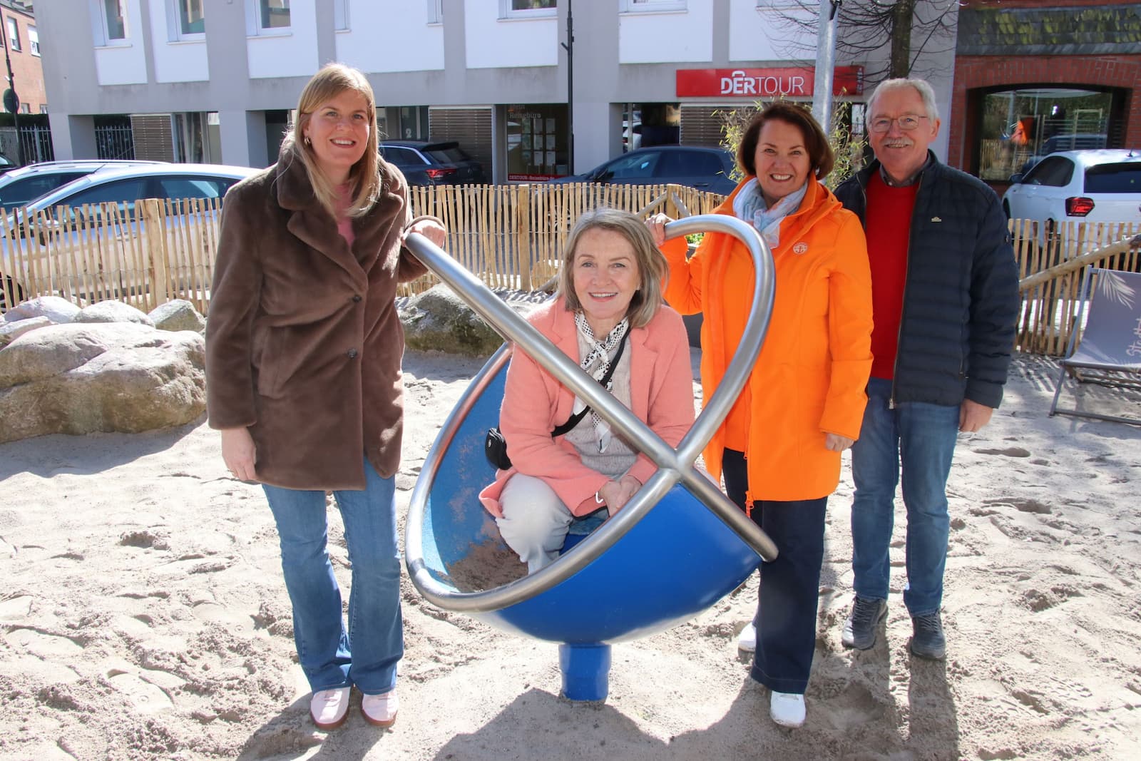 Der Stadtstrand in Damme wurde noch einmal deutlich aufgewertet! Bei einem Ortstermin haben Vertreter der Stiftung Rückenwind, Anne Marcus Rusche, sowie der Bürgerstiftung, Heiko Bertelt und Kerstin Burdiek, gemeinsam mit City-Managerin Eva Maria Deutschländer sowie Wirtschaftsförderer Rolf Mähler und Bauhofleiter Bernhard Kleine Hackmann von der Stadt Damme die neuen Spielgeräte und die Aufwertung der Fläche präsentiert. Beide Stiftungen haben jeweils 15.000 € gestiftet, wodurch der Spielpunkt realisiert werden konnte. Ein weiterer ist bereits in Planung und soll im Frühjahr im Bereich der Volksbank verwirklicht werden.